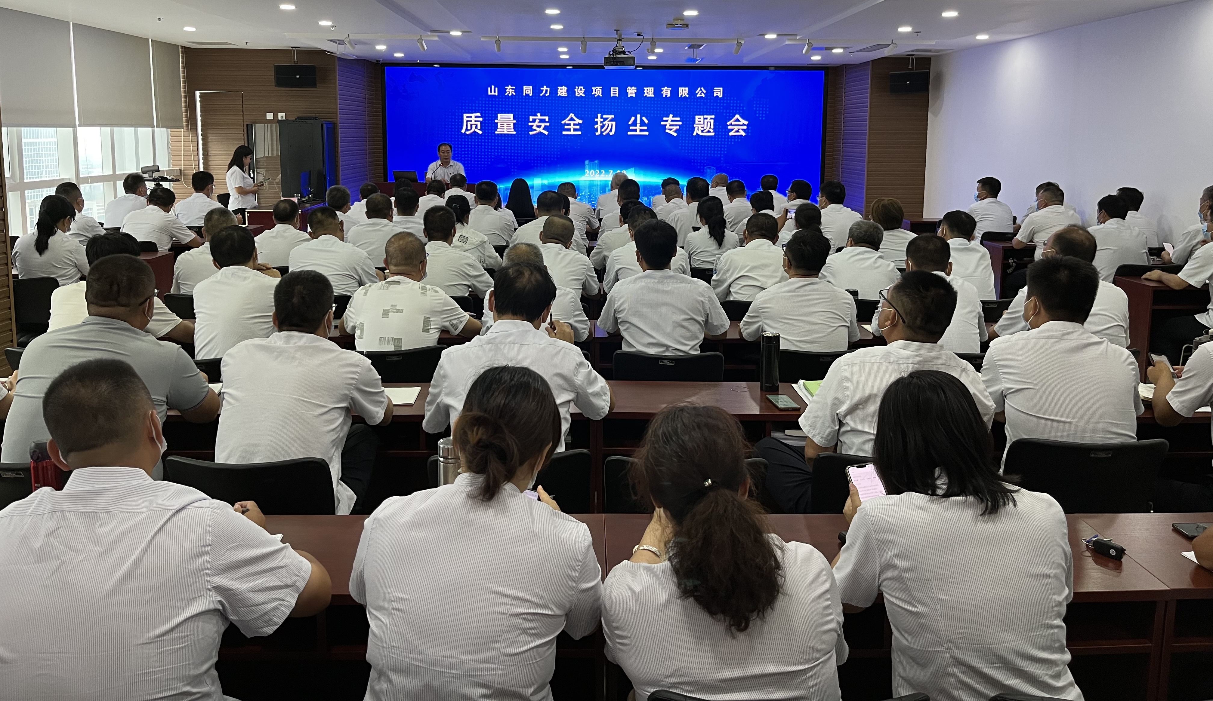 为持续抓好建设工程质量安全管理,有效防治施工扬尘污染,确保建设工程质量、安全稳定可控。7月10日,公司组织召开质量安全扬尘专题会,总经理谢永刚主持会议,公司领导,事业部、分公司经理,项目总监共计106人参会。